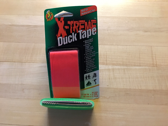 I’ve used duct tape in many other ways. It’s a great way to seal pant and wrist cuffs against snow incursion while playing in powder. I’ve used it to secure electric visor and helmet communicator wires in place. On one tour, it held my jacket together when the zipper broke. On another, I used it to hold a handle bar bag in place after the strap tore off. I’ve even captured that geek look when I held two broken halves of my glasses together at the nosepiece with duct tape. At least it wasn’t white.